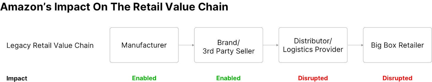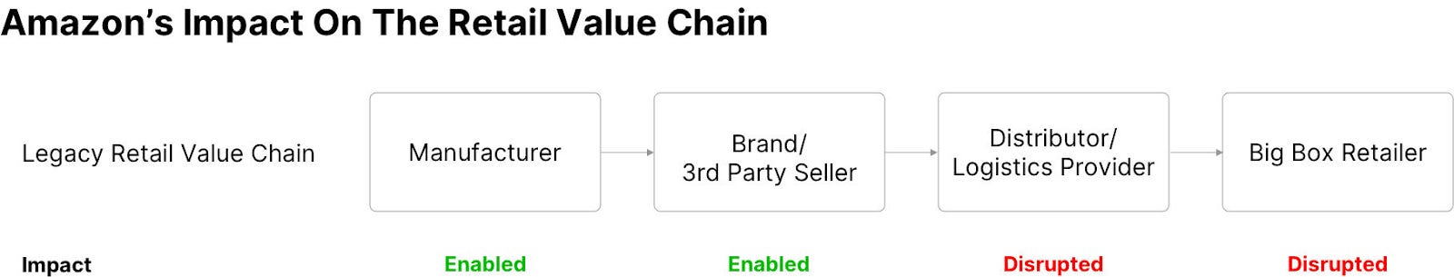 All too often, we hear about founders “disrupting an antiquated industry”, but in reality that is VERY rarely the case. There are cases where they may be disrupting individual segments of that industry, but rarely is the entire value chain at risk. More often than not, these players enable more than they disrupt. In reality, this is often a necessary condition for survival in the value chain, relying on collaborative ties to the industry’s stakeholders (whether as customers or partners) to achieve relevancy. Our team will often look across the value chain, determine the cost structure of various different segments and take a forward-looking view to ask “if successful, how will this company impact the economics of other stakeholders?” When we find a company that significantly improves the efficiency and economics of the overall value chain (often by enabling some and disrupting others) we know there is an opportunity for something special2.