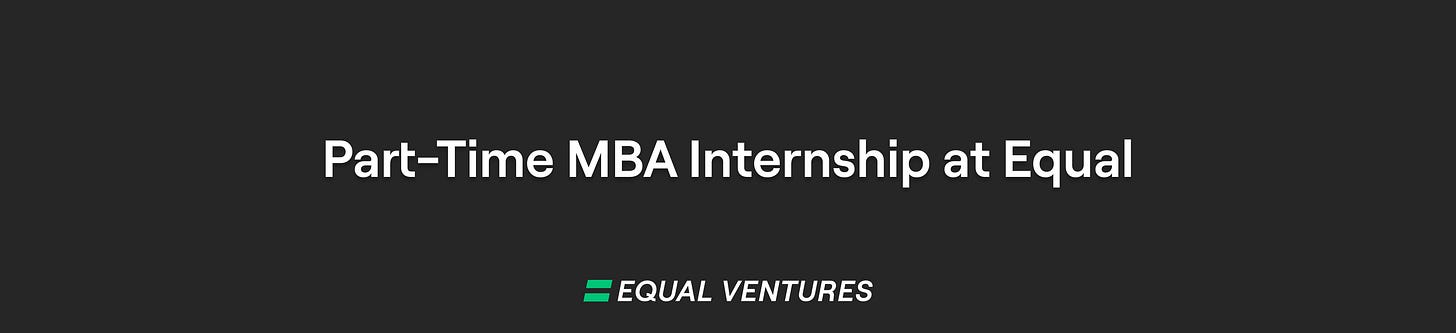 MBA interns at Equal work closely with the investment team to evaluate new companies, analyze emerging themes across the industries we invest in, and contribute to research deep-dives that shape our thesis-driven approach. They gain a front-row seat to how early-stage startups are built and how investors decide which teams are poised to build category-defining companies.